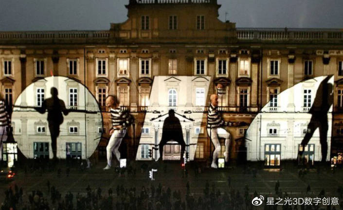 將舞蹈演員的運動運用于建筑立面的動態(tài)投射,產生了一種新奇而又驚人的視覺效果。