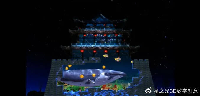 建筑投影利用多媒體數(shù)碼投影技術(shù),結(jié)合虛擬現(xiàn)實、裸眼3D視覺、主題動畫等技術(shù),在建筑外部進行光影修飾,使光影與主題視覺上的變換,給人以強烈的視覺沖擊!