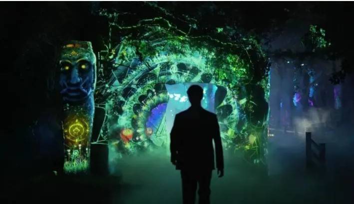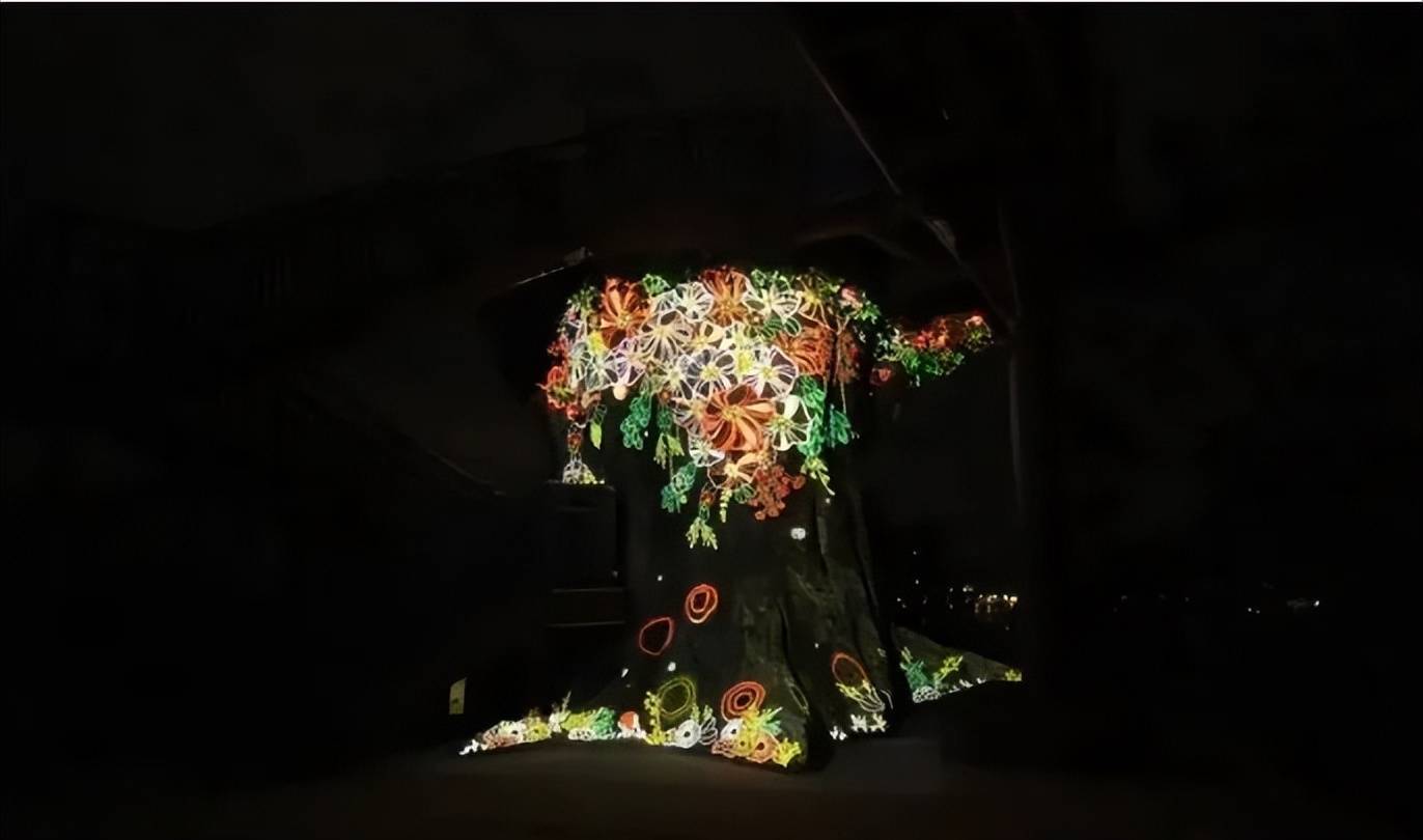 ??呈現(xiàn)給我們的是古??神秘的感覺,以故?的?茶花樹為主,結(jié)合燈光、影像、魔法元素、藤蔓 元素以及古樸?息,營造出了?個超?的數(shù)字藝術(shù)空 間裝置。