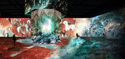 “遇見敦煌 光影藝術(shù)展”將敦煌石窟壁畫彩塑與光雕投影技術(shù)相結(jié)合,讓人瞬間有穿越千年之感,仿佛身臨其境來到莫高窟,見到了真實壁畫。