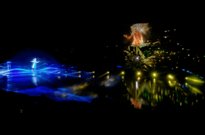 本次展演在7000平方米的水上舞臺和1700平方米的影像覆蓋水面中成就了一場全新的視覺盛宴,其中各種故事環(huán)環(huán)相扣,給觀眾一種嘆為觀止的感受!