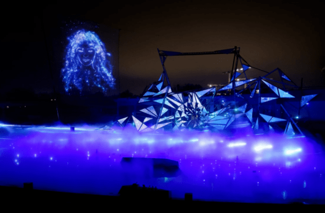 本次演出從不同形式表現(xiàn)由水、激光、影像匯集而成的夢幻與真實、科技與現(xiàn)實之間的神奇魅力。