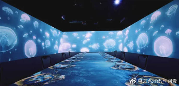 5D全息餐廳與傳統(tǒng)的餐廳空間不同,5D全息投影餐廳采用了交互投影技術(shù),將原本靜止的餐飲空間變成了一個(gè)動態(tài)的視覺,讓消費(fèi)者在不同的場景中,感受到了一種沉浸式的交互式體驗(yàn)。