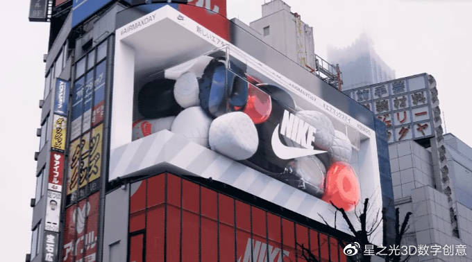 Nike裸眼3D廣告采用了具有識(shí)別力的 Nike球鞋盒,結(jié)合了日本風(fēng)格和機(jī)械風(fēng)格,展現(xiàn)了 Air Max風(fēng)格的多種顏色,給人一種非常強(qiáng)烈的視覺(jué)沖擊。