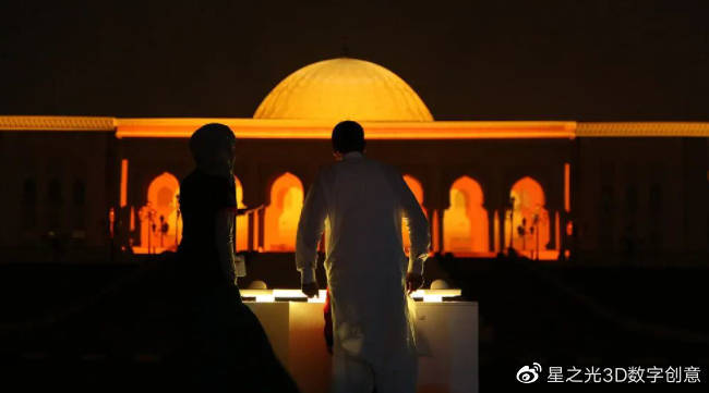 “Maestro”是由 Tigrelab Art的多媒體設計公司在沙迦燈光節(jié)上展出,觀眾可以在一個像“魔法球”一樣的操作平臺上制作三種不同的投影儀:流暢的紋理模式不斷波動、分散,呈現(xiàn)出一幅充滿詩情畫意的景象;阿拉伯風格的一種復雜而又古老的藝術形式。