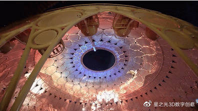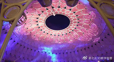 該大樓的穹頂安裝了252臺(tái)投影機(jī),形成一個(gè)360度的沉浸式投影機(jī),讓觀眾在室內(nèi)和室外都能看到,是全球最大的360°投影機(jī)。