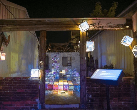 轉(zhuǎn)個(gè)彎,來(lái)到位在王爺廟巷的幻彩結(jié)晶,在破就荒廢的廢墟中,居然還有這麼美的畫面,很難想像,點(diǎn)燈的方塊燈籠,好像漂浮在建筑的冰晶。