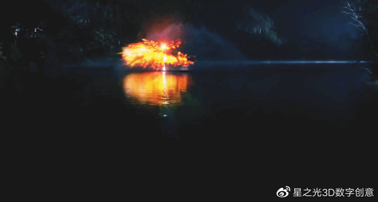 水幕有18米高,40米寬,還有無人駕駛和遠(yuǎn)程控制系統(tǒng)在水霧、燈光、火焰中展示出他們的高貴和力量。